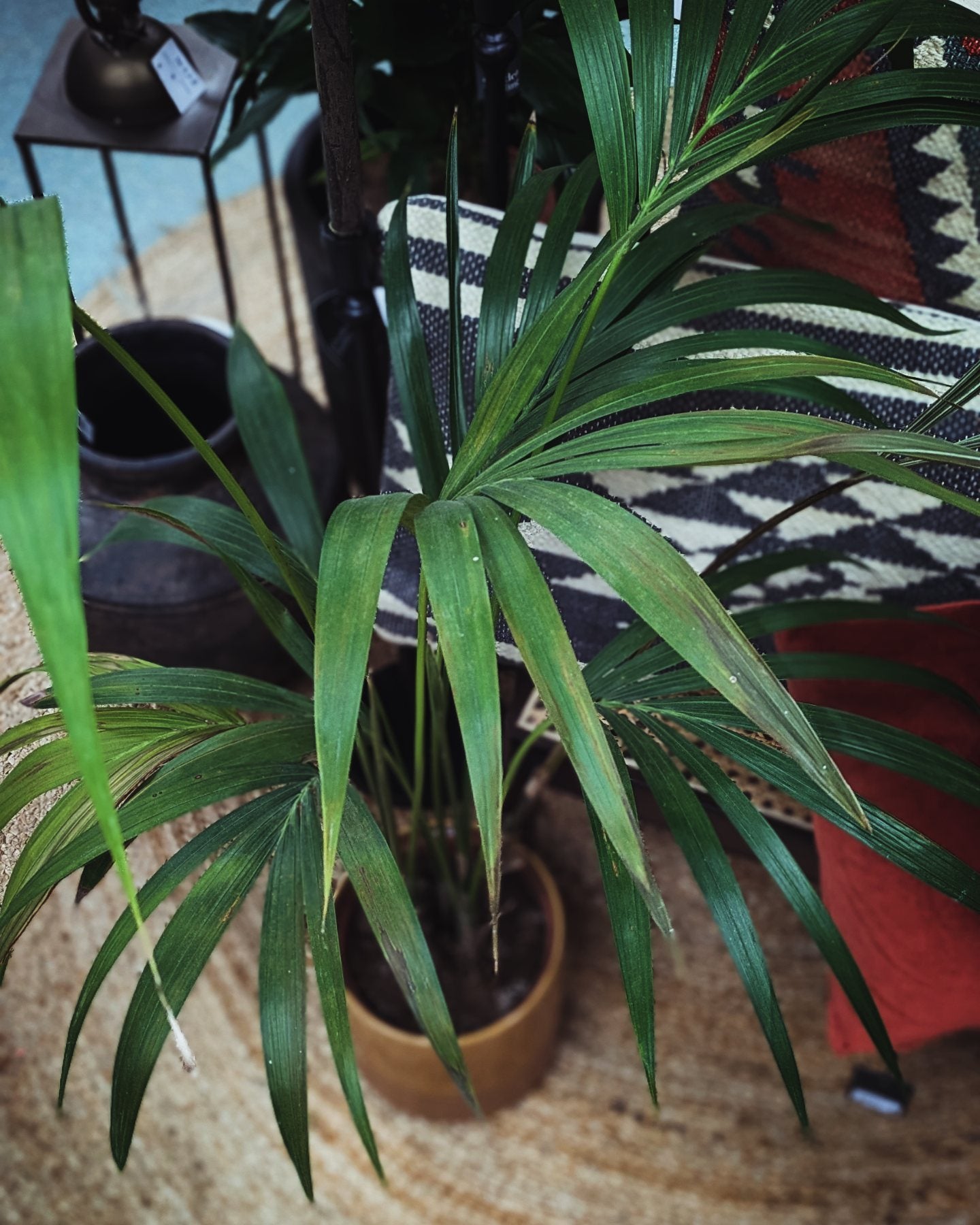 Plant maintenance: Your Howea will appreciate bright light, but not direct sun. Water it if the top two inches of soil feel dry. Regular misting will keep its leaves fresh and green.