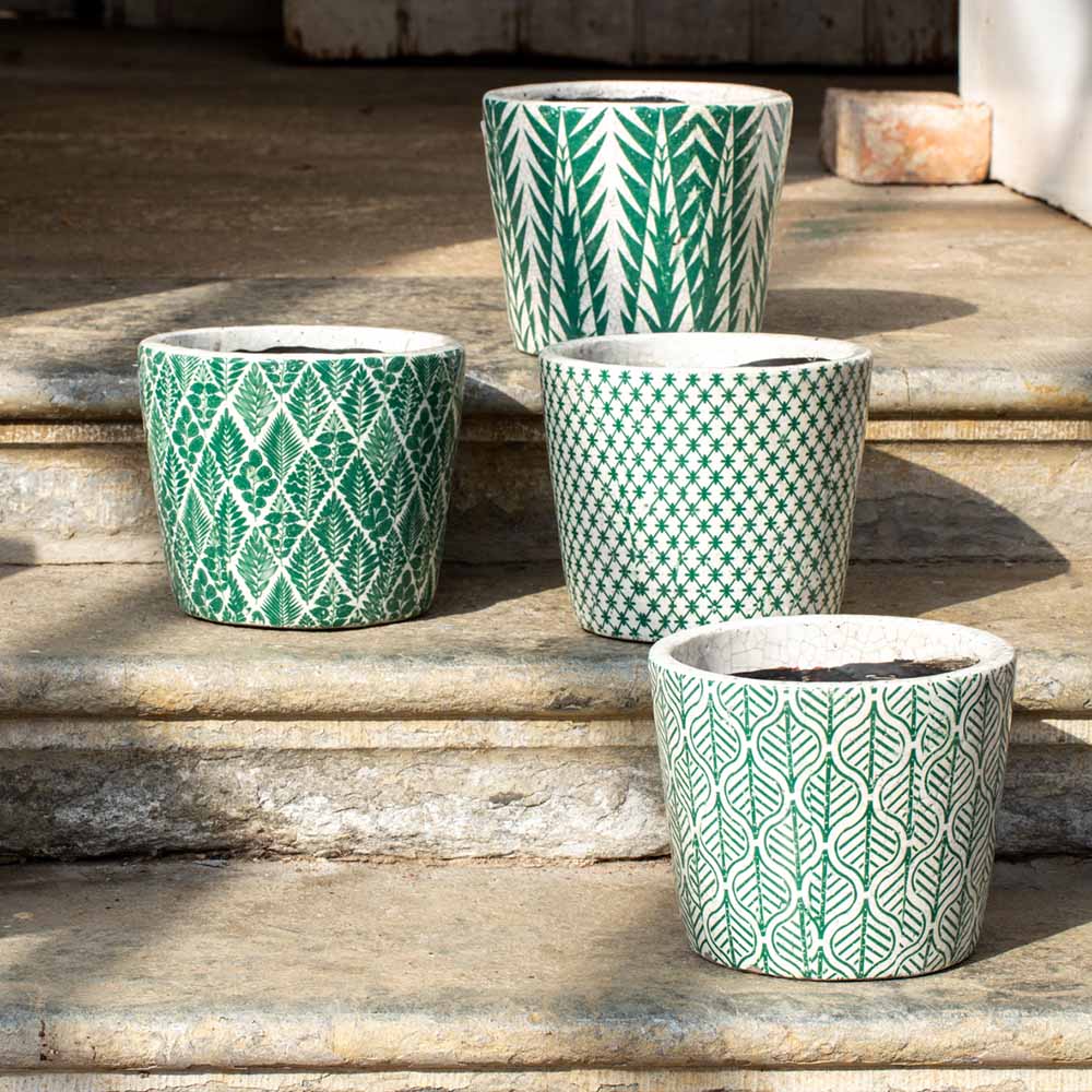 The plant can be presented in one of our beautiful Old Style Dutch pots. These attractive round terracotta plant pots in a lovely range of old style green and teal geometric patterns. These are individually handmade and decorated giving each pot character of their own, this also means the colour may vary from time to time.